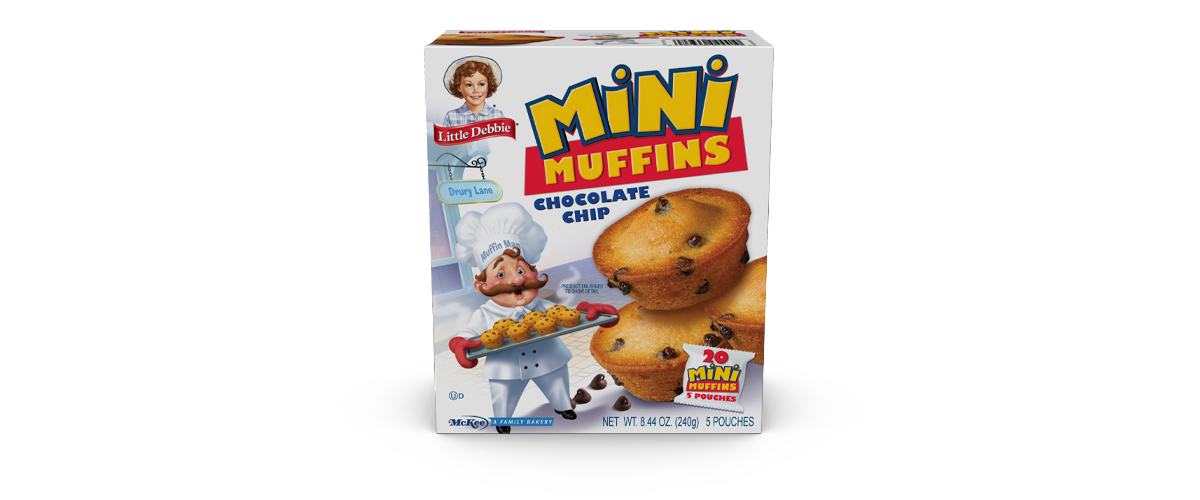 Serving size, 1 muffin (54 g) . Mini muffins, chocolate chip ; Shop for little debbie® chocolate chip mini muffins (5 ct / 1.69 oz) at food 4 less. *the % daily value (dv) tells you how much a nutrient in a serving of food contributes to a daily diet. 2,000 calories a day is used for general nutrition .