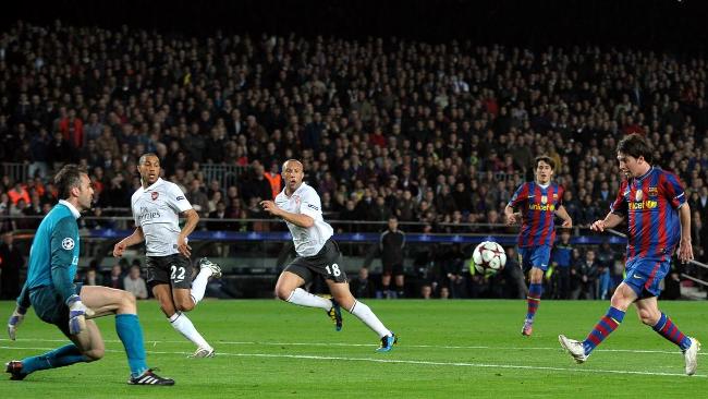 In a match when they are 1v1 with the goalkeeper or chip the ball over the defence.