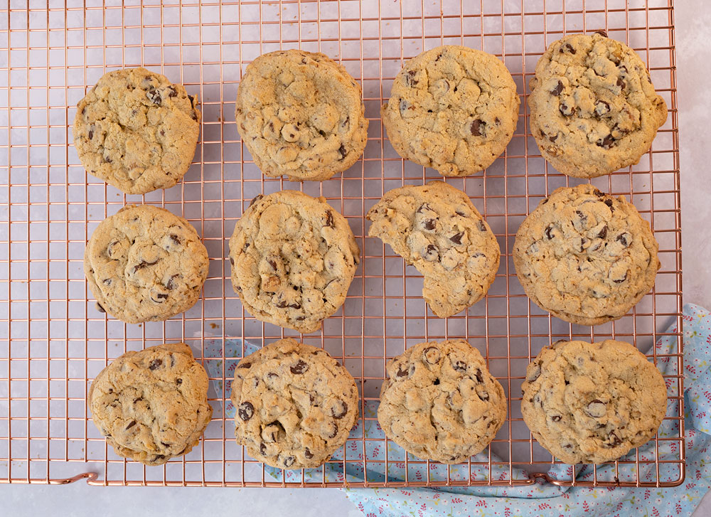 Increase flour to 2 1/2 cups plus 2 tbsp. They are made with shortening instead of butter, which makes them perfectly chewy with slightly crunchy edges. My mother says this is the original chocolate chip cookie recipe passed down from my grandmother. If you use a heavier bread flour and chill the dough for at least 24 hours you'll have the best cookies ever! Add 1 cup creamy peanut butter with butter and sugars, and add 1 cup lightly salted peanuts with morsels.