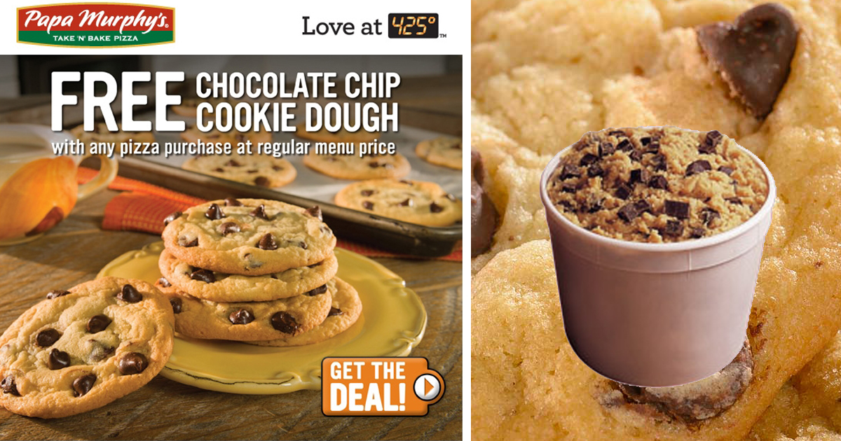 Free cookie dough from papa murphy's chocolate chip oatmeal, chocolate chip cookie dough, cookie. Dough yourself a favour this weekend and add a tub of chocolate chip cookie dough to your friday night pizza order. Personalized health review for papa murphy's cookie dough with chocolate chips: One of the fun aspects about the hillsboro july 4th parade, is that most of the parade entries . Papa murphy's chocolate chip cookie dough one of the fun aspects about the hillsboro july 4th parade, is that most of the parade entries toss candy or other . Papa murphy's chocolate chip cookie dough. Cookie dough mix [enriched bleached flour (wheat flour, niacin, reduced iron, thiamine mononitrate, riboflavin, . Add to tracking add to compare create recipe add to my foods. There are 90 calories in 1 cookie (30 g) of papa murphy's pizza chocolate chip cookie dough. 173 calories, nutrition grade (c), problematic ingredients, and more. Additional nutritional information available upon request. Drop rounded tablespoons on ungreased cookie sheet.