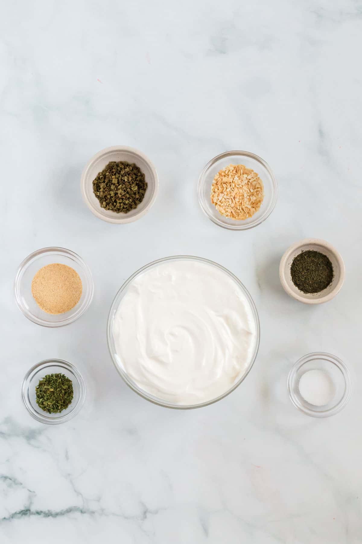 Ingredients · 16 ounces sour cream · 2 tablespoons dried minced onion · 1 tablespoon dried dill weed · 2 teaspoons dried parsley · 1 teaspoon garlic salt . ▢ 2 cups sour cream · ▢ 2 tbsp dried minced onion · ▢ 2 tsp dill weed · ▢ 2 tsp garlic powder · ▢ 1 tsp parsley flakes · ▢ 1/2 tsp seasoning . Seasonings dried chives, garlic powder, onion powder, dill, and salt & pepper all add to the flavor of this dip! This recipe uses all pantry spices making it easy for any time of year! 1x 2x 3x · 16 oz sour cream · 2 tbsp dried onions · 1 tbsp parsley, finely chopped · 3 tsp worcestershire · 2 tsp garlic powder · 1 1/2 .