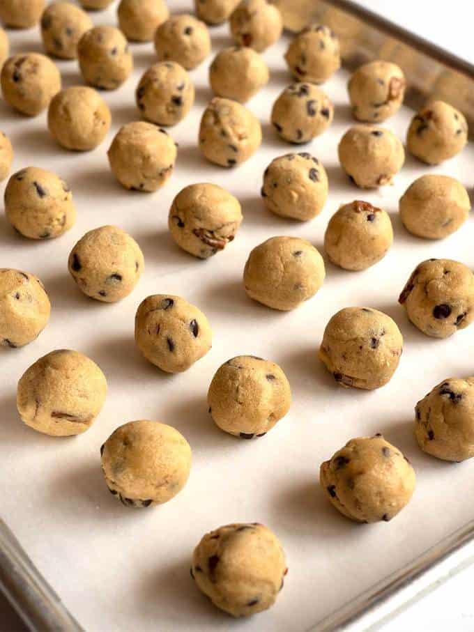 Gradually add flour, soda, chips and nuts. Top with more chocolate chips and sprinkle with flaky salt. These easy candies look like fancy chocolate truffles, but they're really just chocolate chip cookie dough in delicious disguise. Use toothpicks to dip the balls in the chocolate (which i had no probs with). I do this over the sink to avoid a mess!