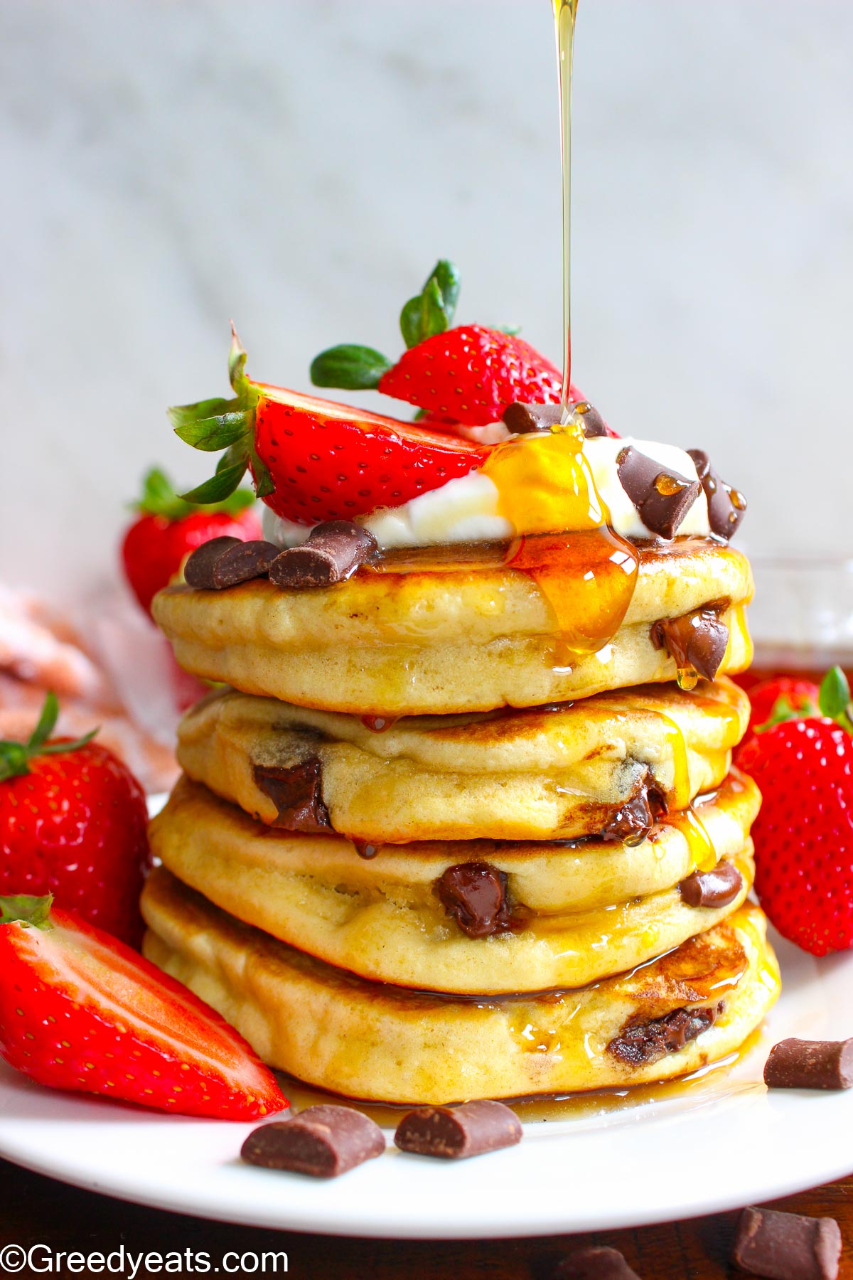 Warm, fluffy, and chocolatey, these chocolate chip pancakes are worth waking up for!