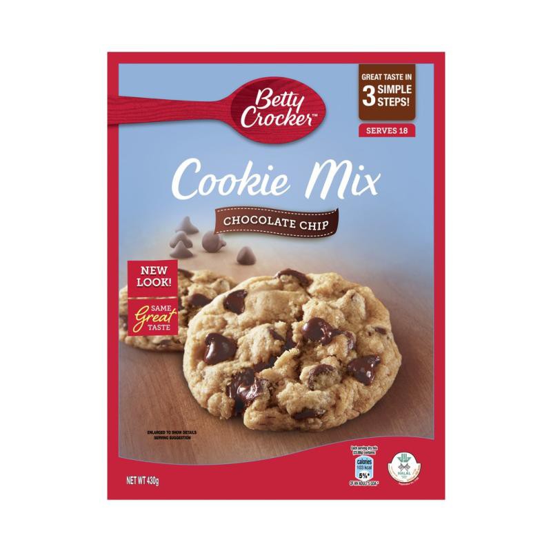 Instructions · heat oven to 190 degree celsius. Fill your home with the smell of freshly baked cookies in three easy steps with betty crocker chocolate chip cookie mix. Enriched flour bleached (wheat flour, niacin, iron, thiamin mononitrate, riboflavin, folic acid), chocolate chips (sugar, chocolate liquor, cocoa butter, soy . Enriched wheat flour, sugar, sweet chocolate chips sugar, chocolate liquor, cocoa butter, soy lecithin, vanilla, corn . Simply mix with softened butter and .